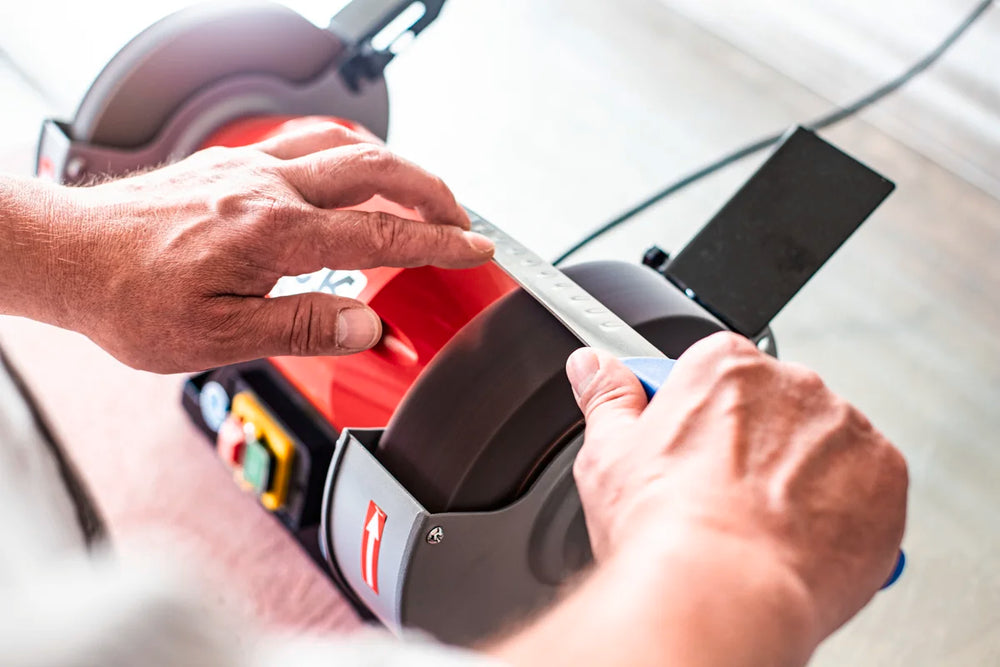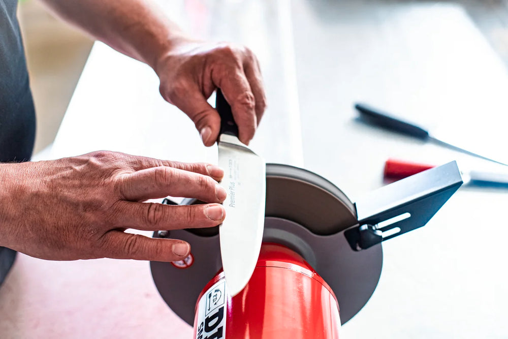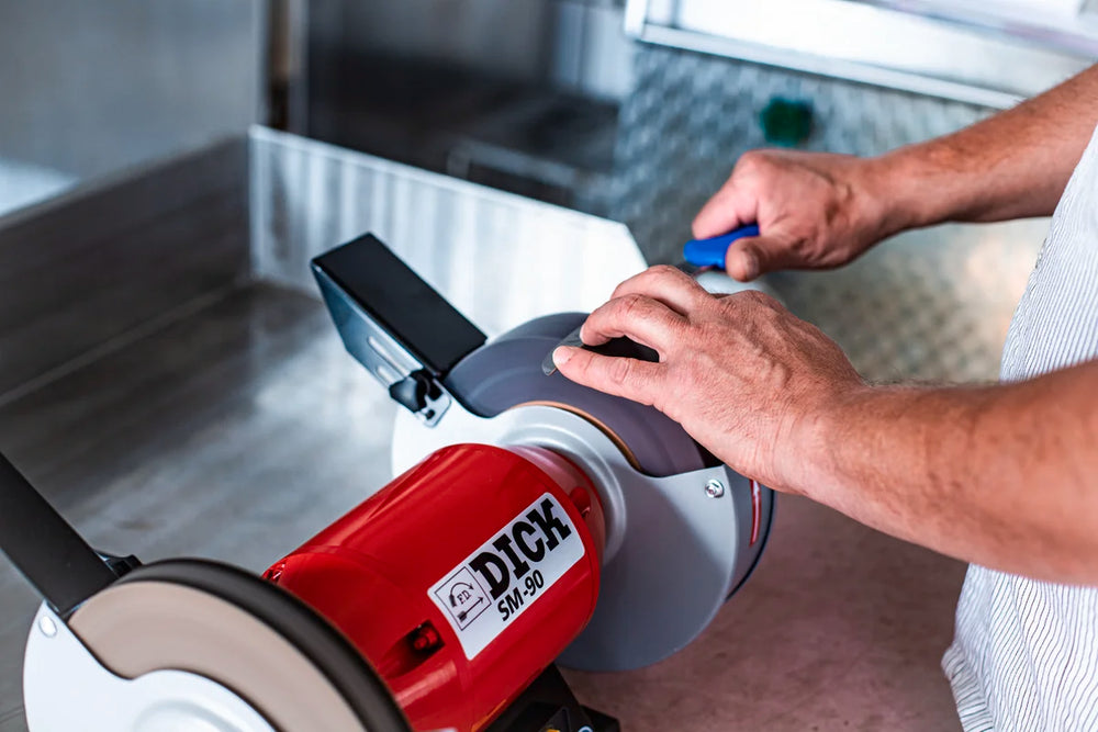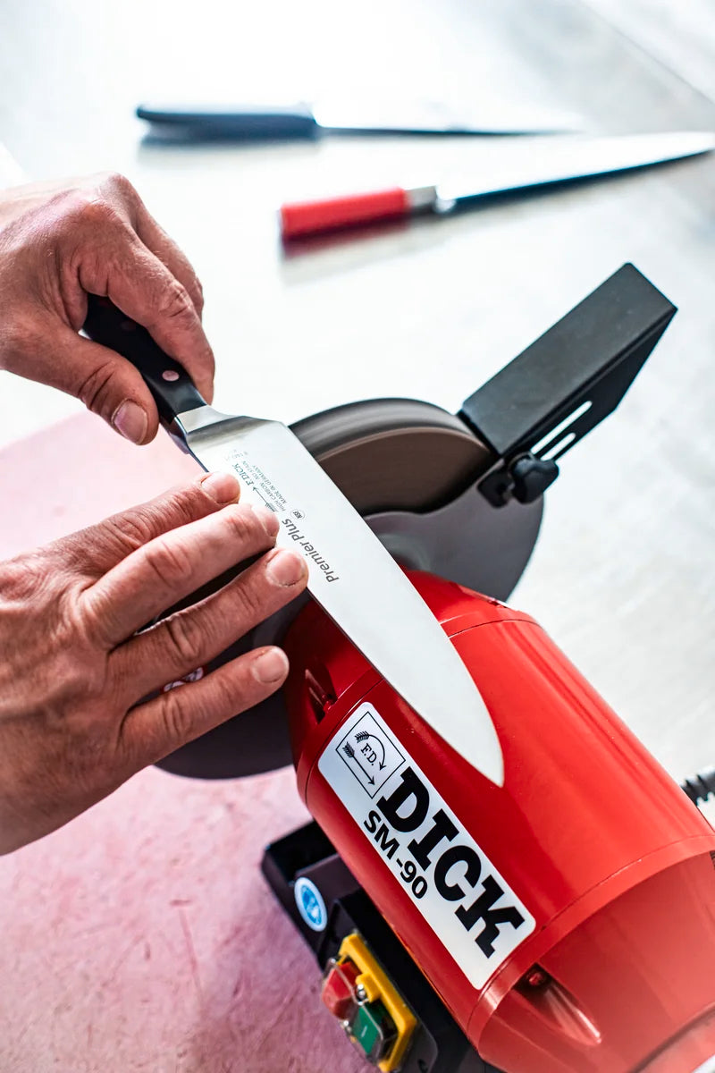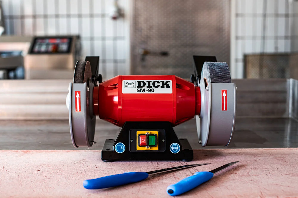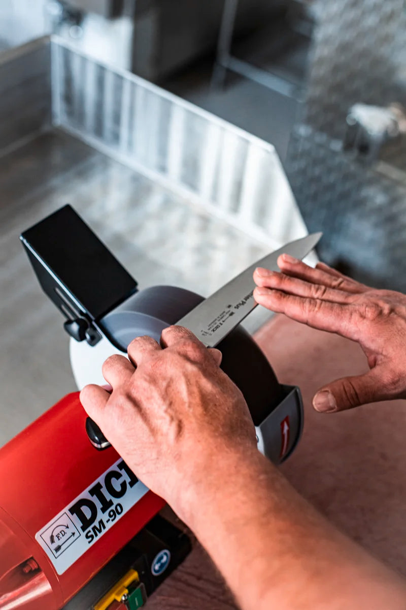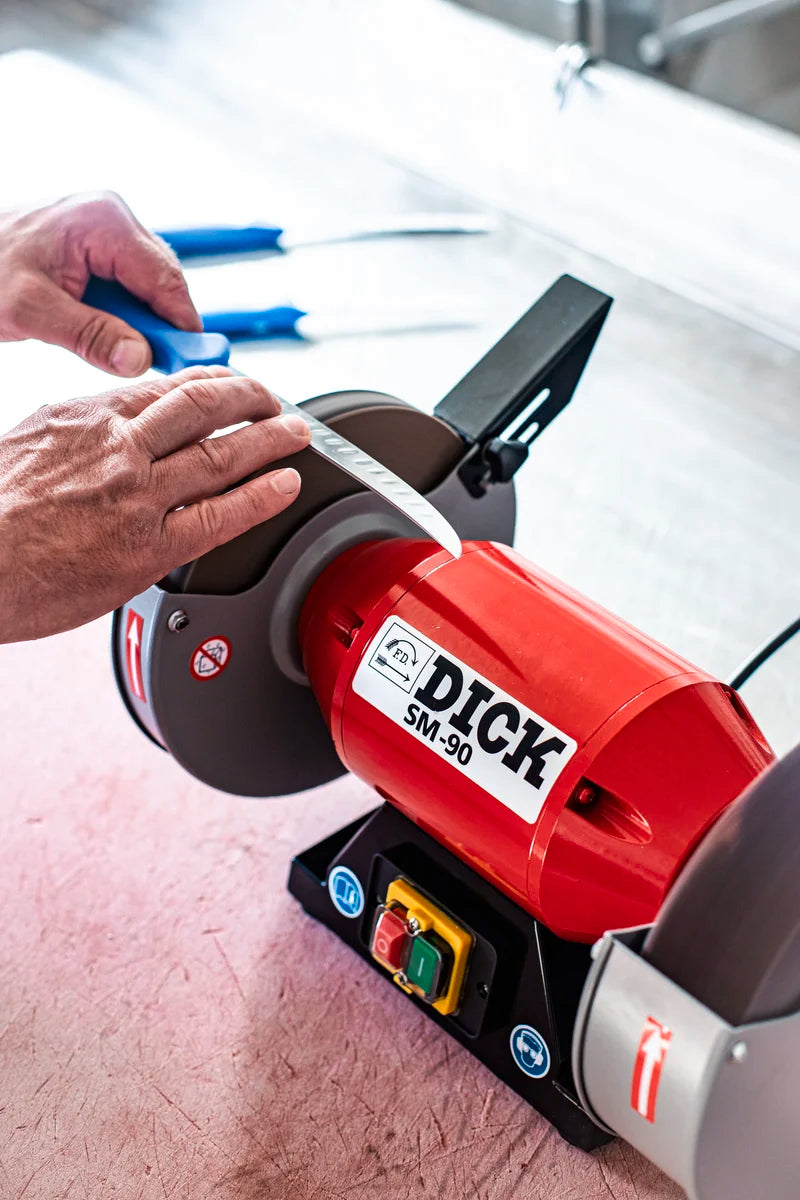 Die Dick SM-90 Lamellenschleifmaschine macht Schleifen und Polieren sagenhaft einfach. Schnell scharfe Messer auf unkomplizierte Art und Weise.