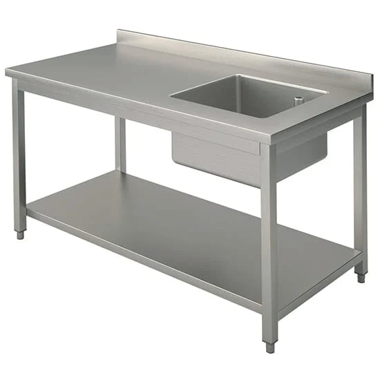 Mastro Arbeitstisch mit Becken rechts, mit Grundboden, mit Aufkantung, 1800x700 mm