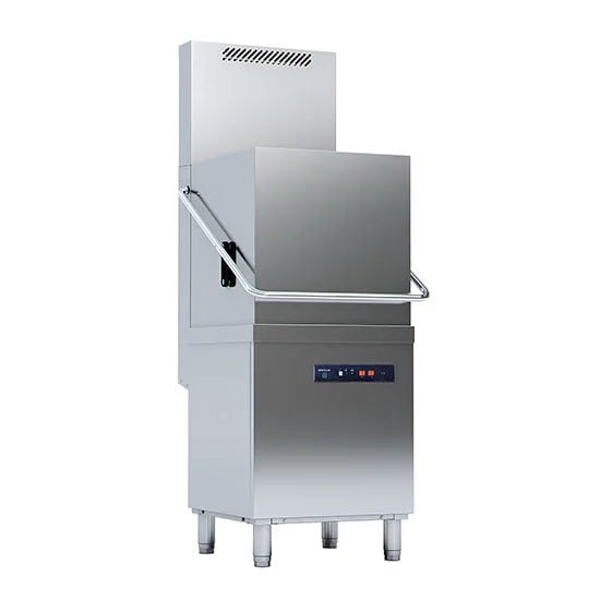 Edelstahl-Konstruktion. Doppeltes Wasch und Spülsystem mit Edelstahl-Dreharmen oben und unten. 440 mm Haubenöffnung (Platz für GN-1/1-Tabletts) Kontinuierlicher Waschzyklus bis zu 10'. Abgerundeter Waschraum für einfache Reinigung und Entleerung. Geschützte Heizwiderstände aus Edelstahl im Waschraum und Spülkessel. Verschiedene Spannungsoptionen: möglicher Anschluss an Netz mit ein oder dreiphasiger Spannung. Filtertabletts aus Edelstahl AISI-304 im Waschraum. Thermostatsteuerung der Temperaturen (Waschen 60°C und Klarspülen 90°C). Thermisches Stoppsystem zur Gewährleistung einer Spültemperatur von 85°C. Sicherheitsmagnetschalter für das Öffnen der Haube. Sicherheitsthermostat. Maschine mit Bedienfeld und elektronischer Steuerung. Abwechselnde oder gleichzeitige Beheizung von Tank und Kessel. Klarspülung mit dem Thermostop-System. Abwechselnde oder gleichzeitige Beheizung der Widerstände von Tank und Kessel möglich. Klarspülpumpe zur Sicherstellung eines hygienisch perfekten Ergebnisses mit einem kompletten linearen Spülzyklus bei 85°C. Air Break-System.Im Lieferumfang enthalten: Klarspülpumpe, Abwasserpumpe, Peristaltischer Spülmitteldosierer, Wärmerückgewinnung.