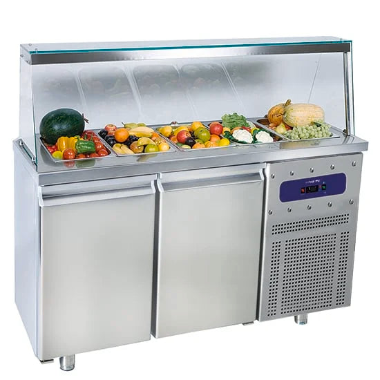 Mastro Saladette mit 2 Türen GN 1/1 und Glasstruktur, 4x GN 1/1 H=150 mm, -2°/+8°C