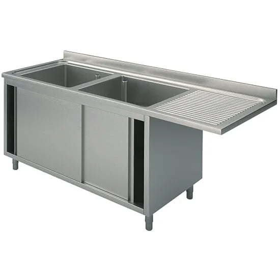 Mastro Spülschrank mit Schiebetüren für Einbau-Geschirrspüler, 2 Becken links, 1800x700 mm