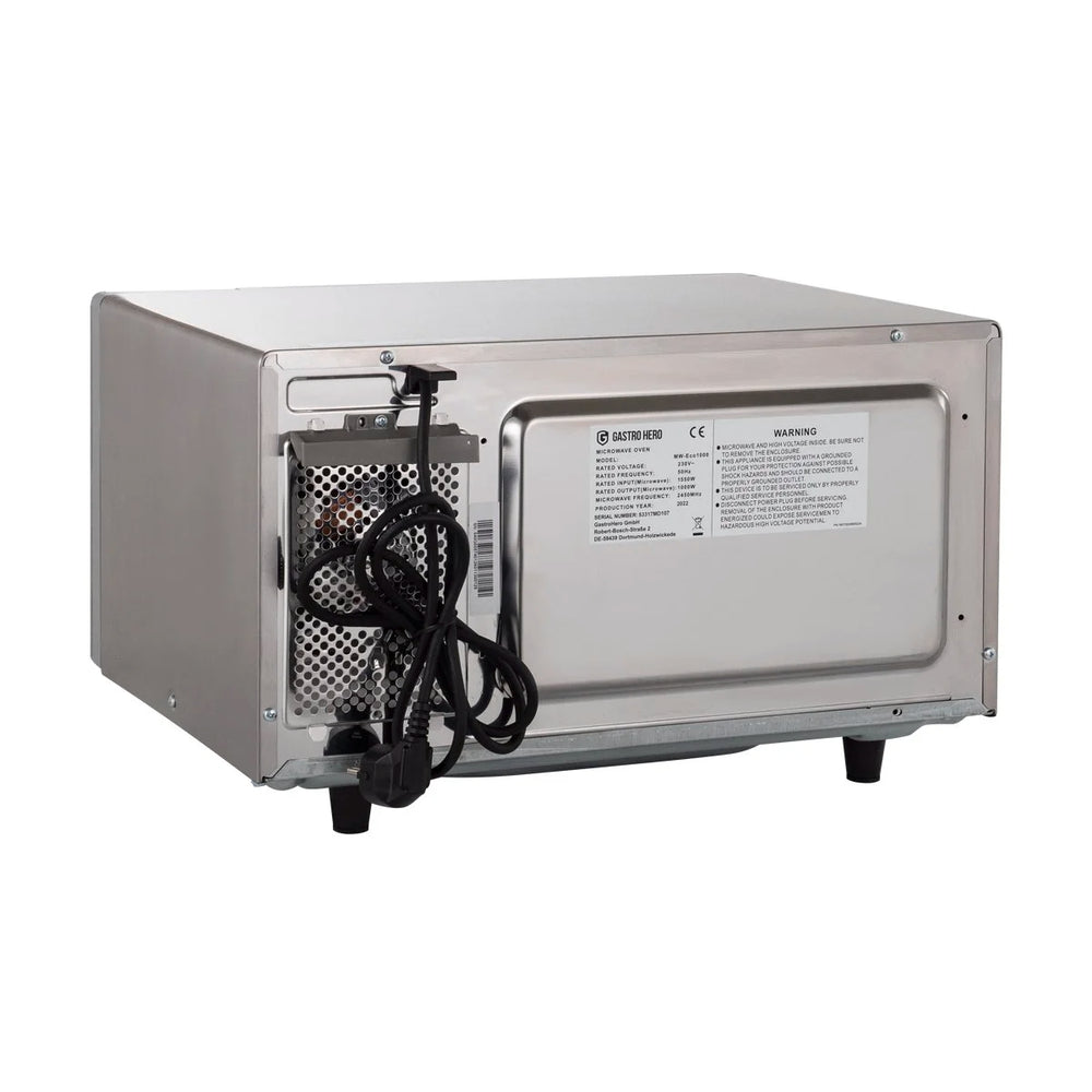 Die hochwertige Mikrowelle ECO 1000 W ist vollständig aus hochwertigem Edelstahl hergestellt und daher äußerst belastbar. Sie verfügt über ein LED-Display, verschiedene Garstufen und ist ideal für alle Großküchen, Restaurants und Imbiss-Betriebe geeignet.