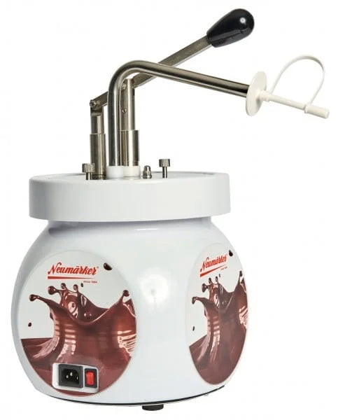 Praktische Pumpe zum Portionieren von Nuss-Nougat-Creme. Besonders einfach: Die original 3-Liter-Eimer von Nutella® können komplett in den Spender gestellt werden. Die Nuss-Nougat-Creme wird erwärmt und lässt sich direkt auf Waffeln oder Crêpes geben.