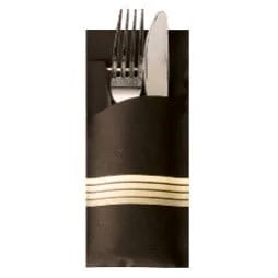 Papstar Bestecktasche Stripes - schwarz/creme inkl. farbiger Serviette