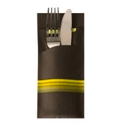 Papstar Bestecktasche Stripes - schwarz/limone inkl. farbiger Serviette