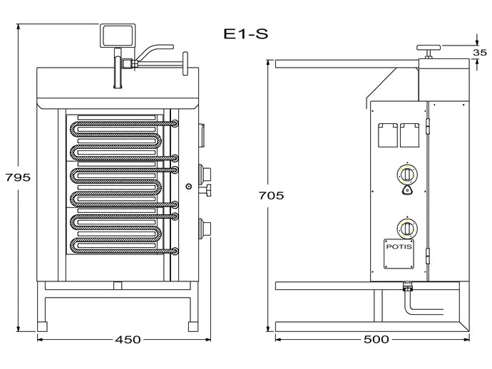 Potis Dönergrill / Gyrosgrill Elektro E1 - achteckige Fettwanne