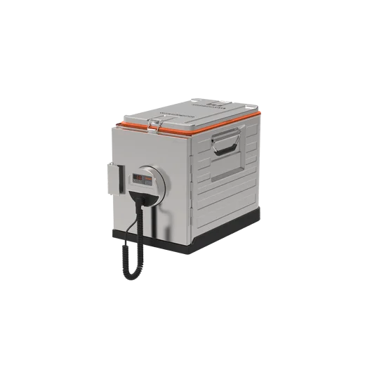 - Umluftbeheizte Frontlader Transport-Box aus Edelstahl passend für GN 1/1