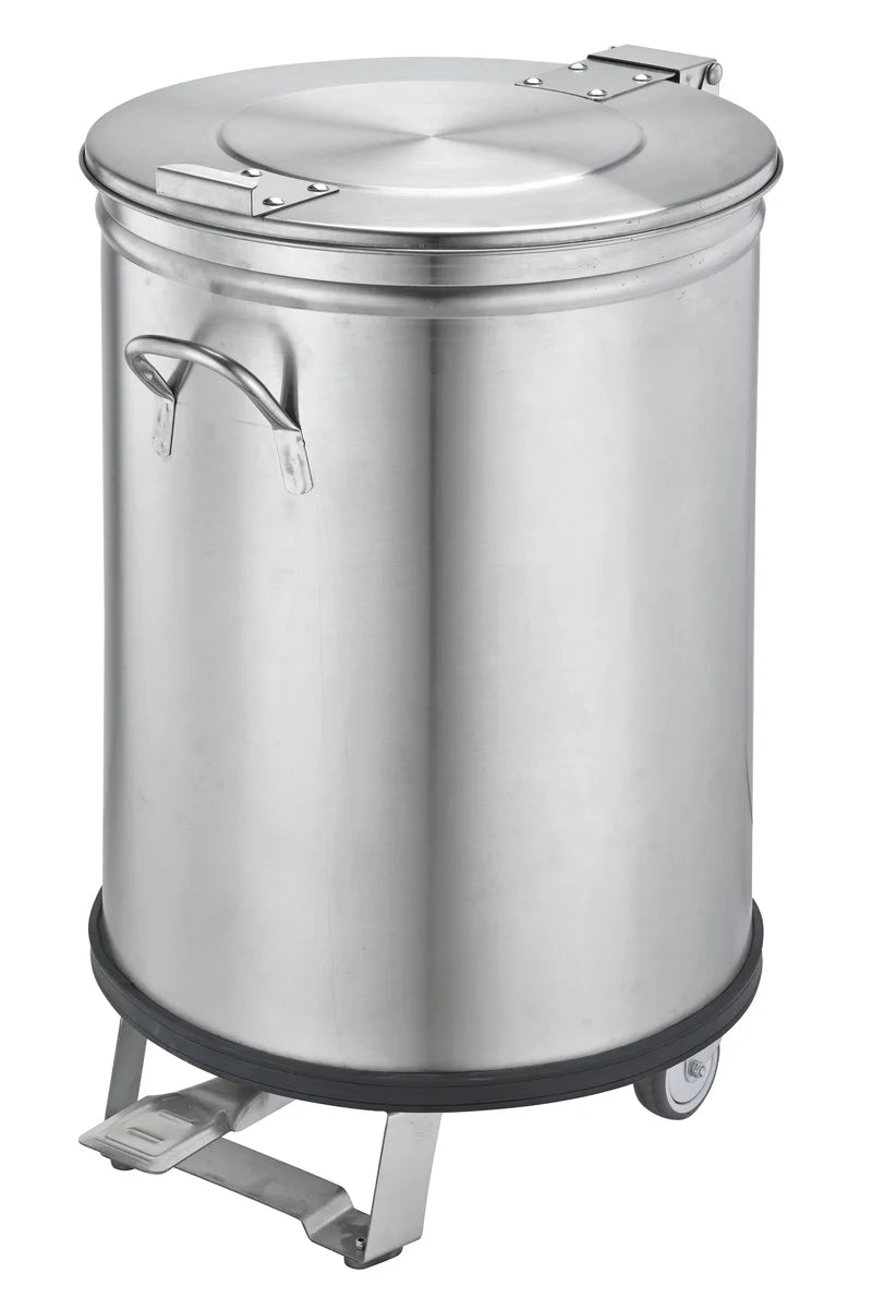 - Edelstahl-Abfallbehälter auf Rädern mit Pedal zum Öffnen des Deckels