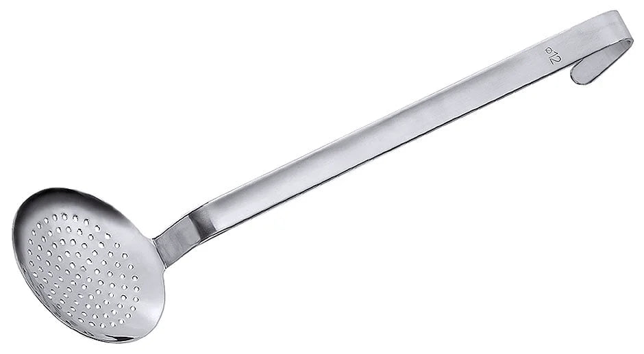 Schaumlöffel, Edelstahl, 4 mm Lochung, Stiel 44 cm, Durchmesser 20 cm