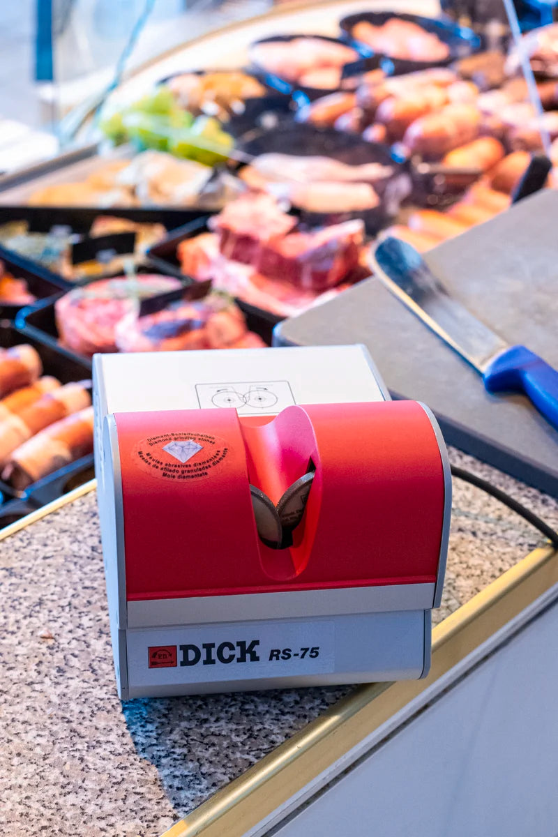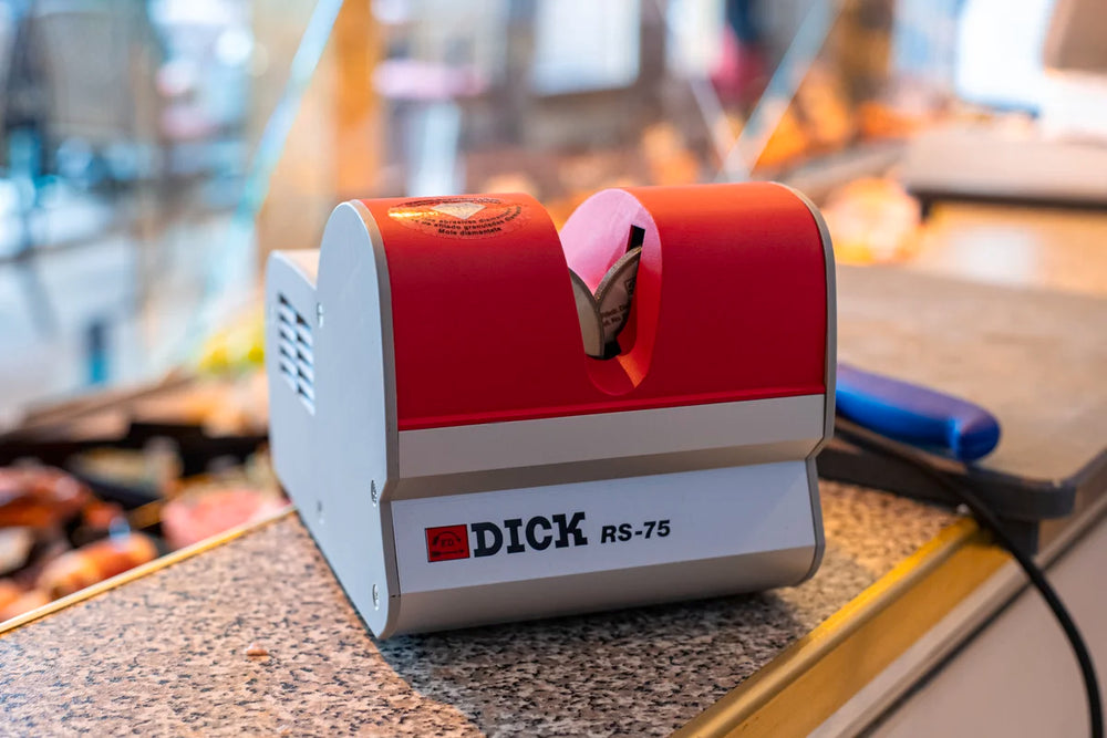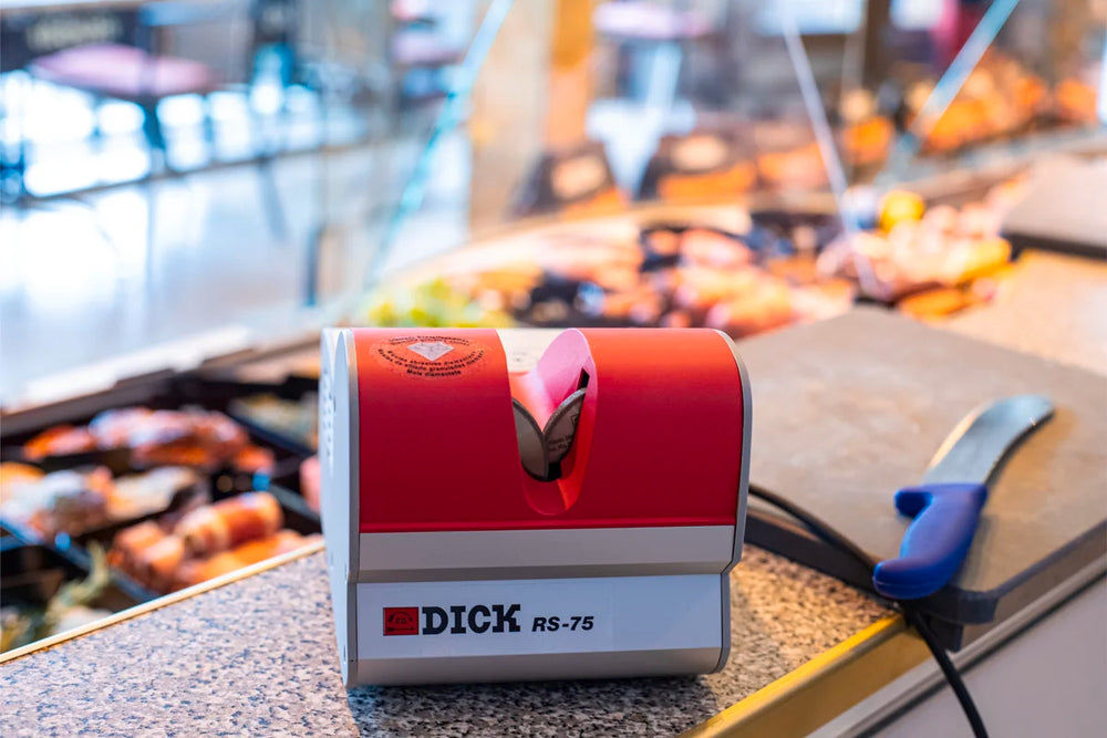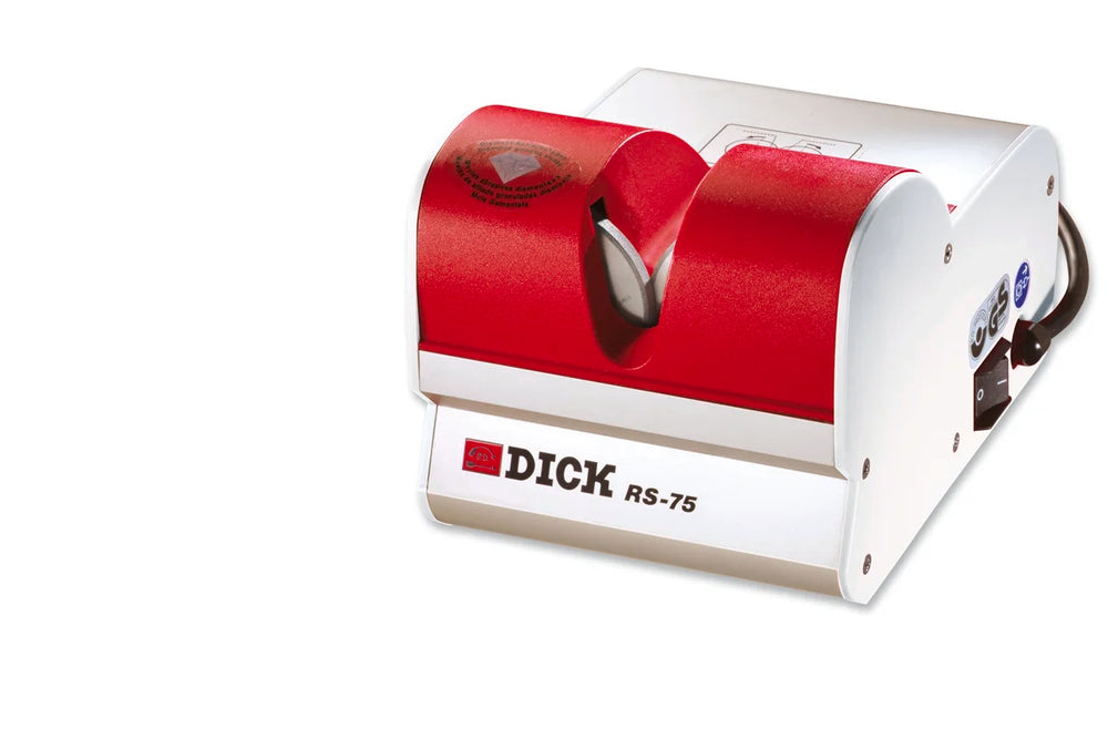 Die RS-75 von DICK! Die einfache Schärflösung von der Traditionsmarke der Profis! RS-75, das bedeutet Schleiftechnologie vom Spezialisten für wirkungsvolles Schärfen bei minimalem Messerverschleiß. Die RS-75 ist schnell, sicher, effektiv und einfach zu bedienen.