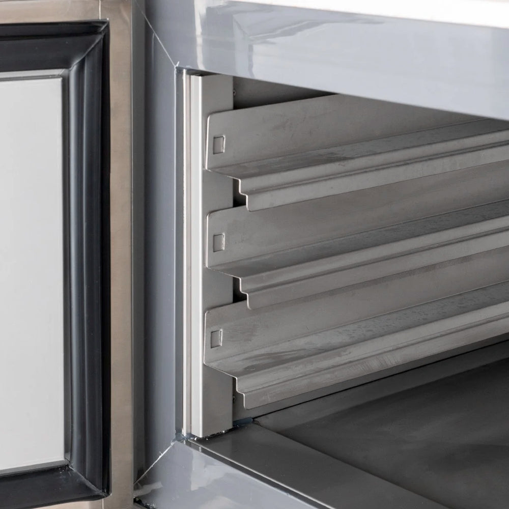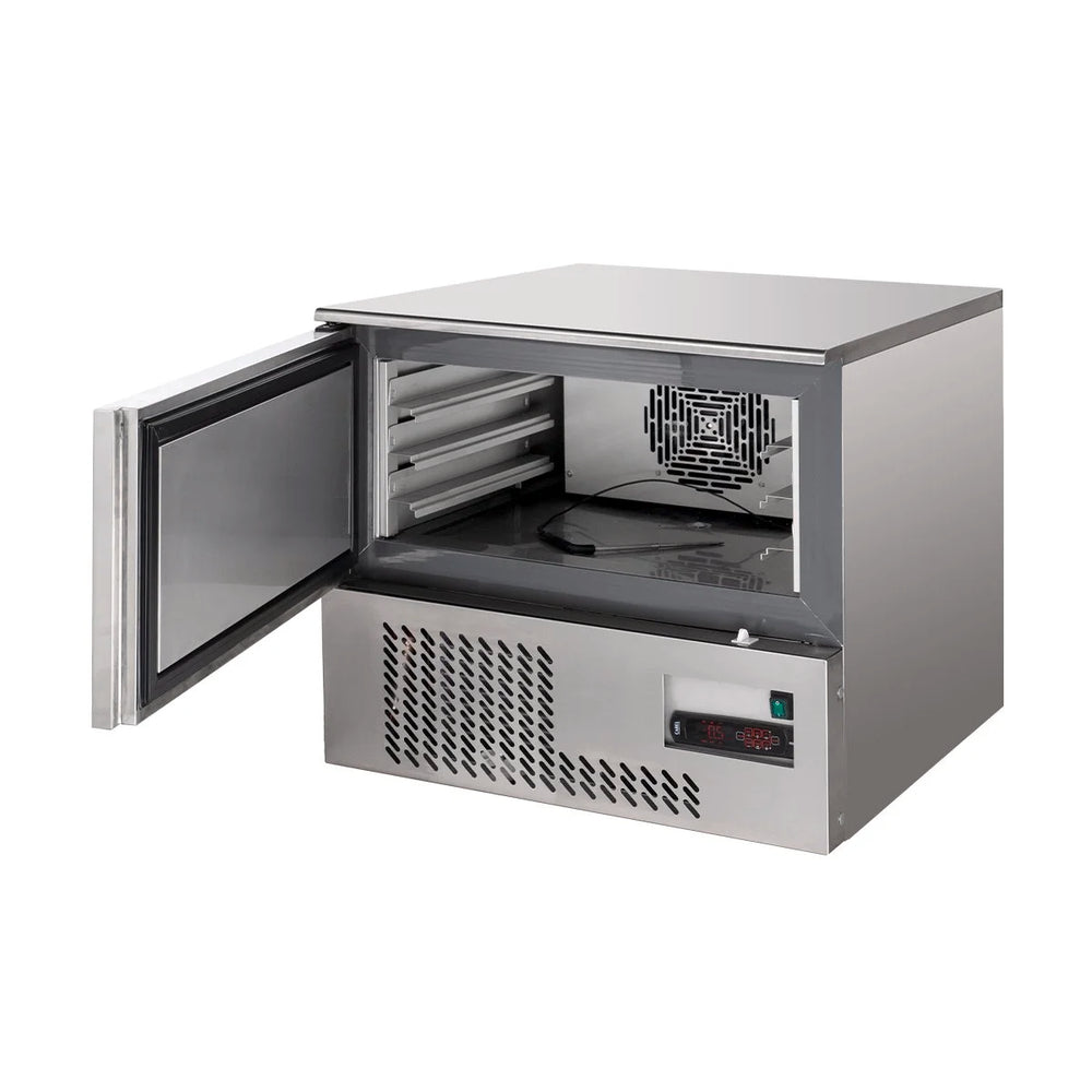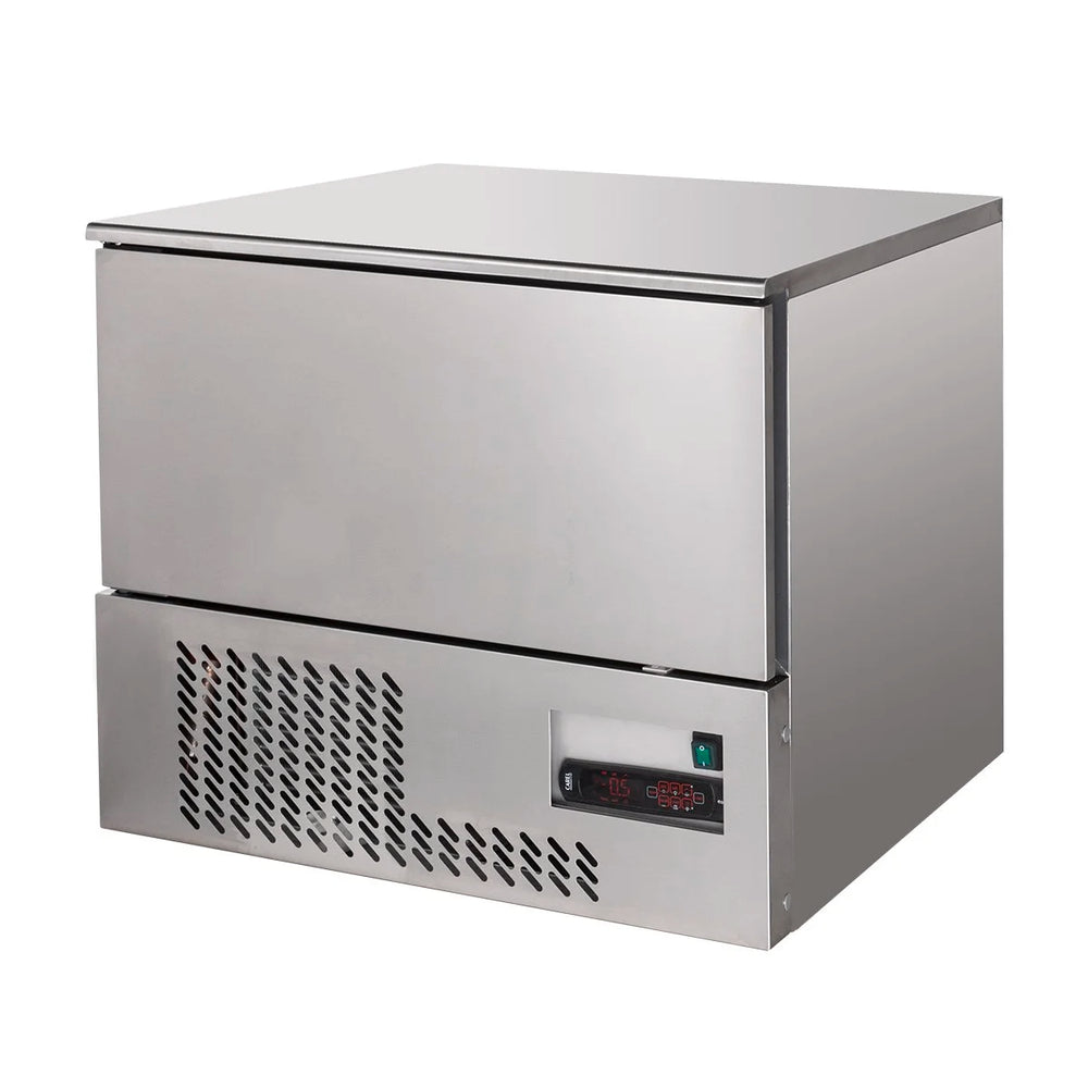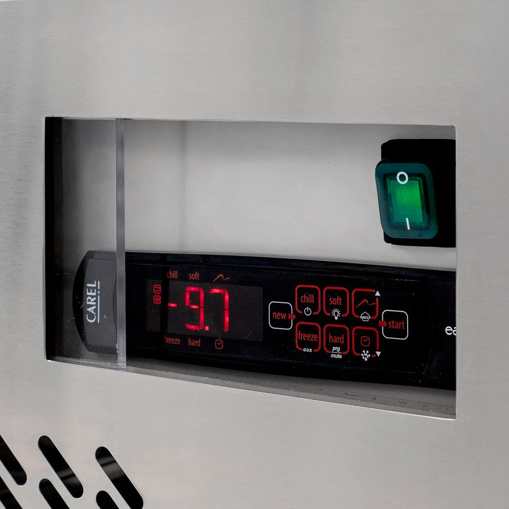 Mit dem neuen Schockfroster Eco werden Ihre Lebensmittel durch Unser hervorragendes Kühlsystem in kürzester Zeit herunter gekühlt. Des Weitern halten Wir Ihre Stromkosten in Grenzen, da unsere Agregate nach erreichen der gwünschten Temperatur den Energieverbrauch beträchtlich absenken. Unser Schockfroster zeichnet sich zu dem durch seine hohe Funktionalität aus, da er Platz für 3 GN 1/1 Tabletts bietet und mit einer automatischen Abtauung, sowie höhenverstellbaren Füßen ausgestattet ist.