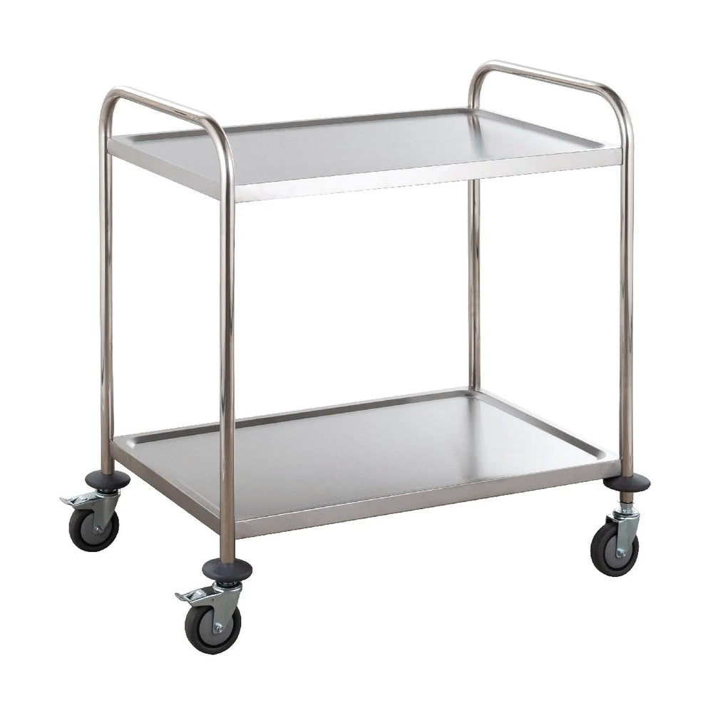 Die Servier- und Transportwagen der Basic Serie sind besonders langlebig und leicht zu reinigen. Durch die Rollen eignen sie sich ideal für Großküchen, Bistros oder Veranstaltungen.