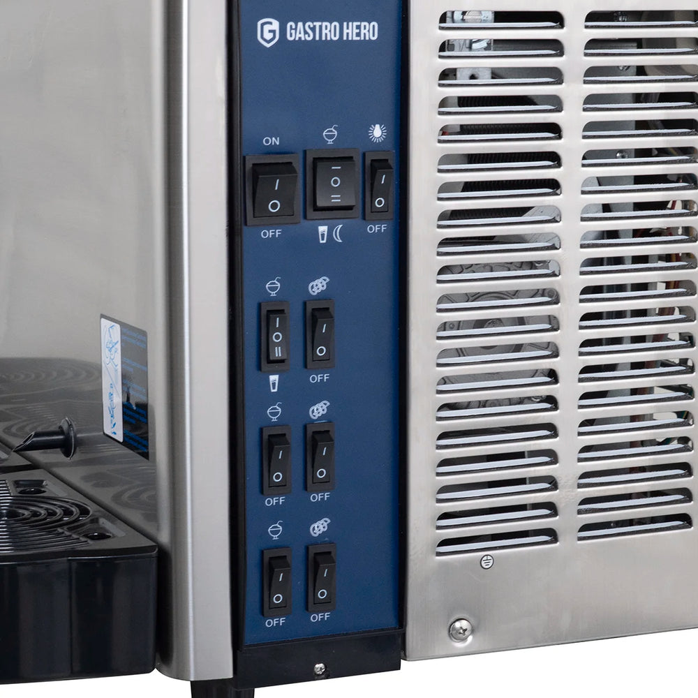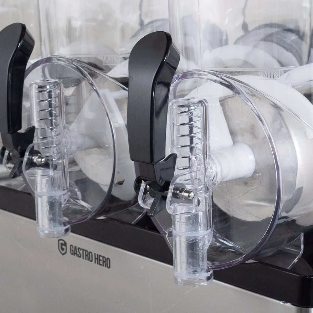 Die Abdeckung aus robustem ABS Kunststoff sieht nicht nur gut aus, sondern lässt sich auch leicht reinigen. Dank des Temperaturbereichs von -2 bis 3 °C können Sie sicher sein, dass Ihre Slushies immer die perfekte Konsistenz haben.