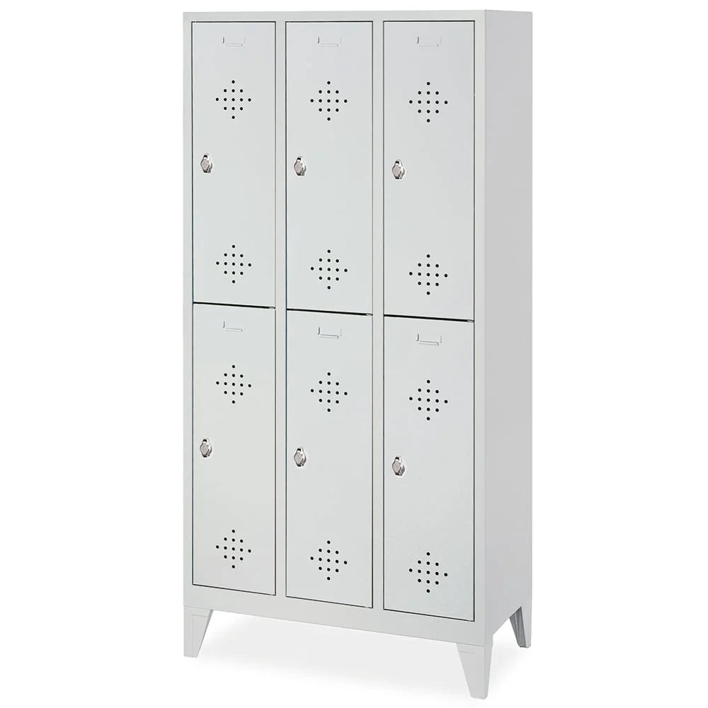 Stahl-Fächerschrank mit Füßen und Drehriegelverschluss, 6 Fächer, BxTxH 900x500x1850 mm