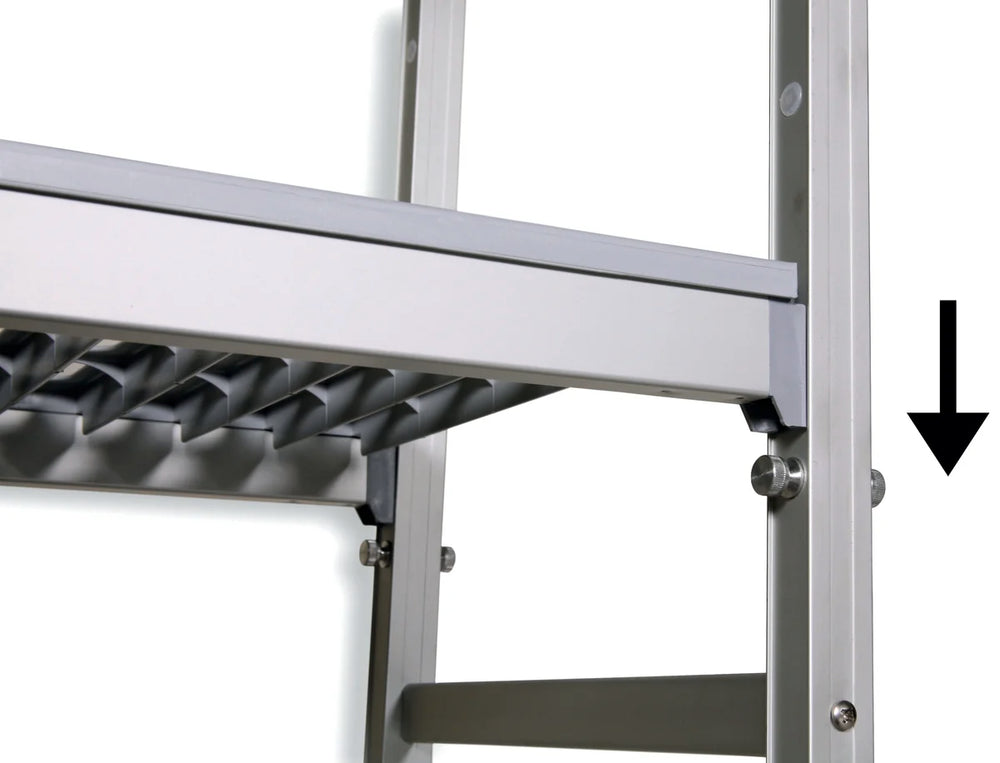 - widerstandsfähiges Aluminiumgerüst mit Ablagen aus lebensmittelgeeignetem Polyethylen