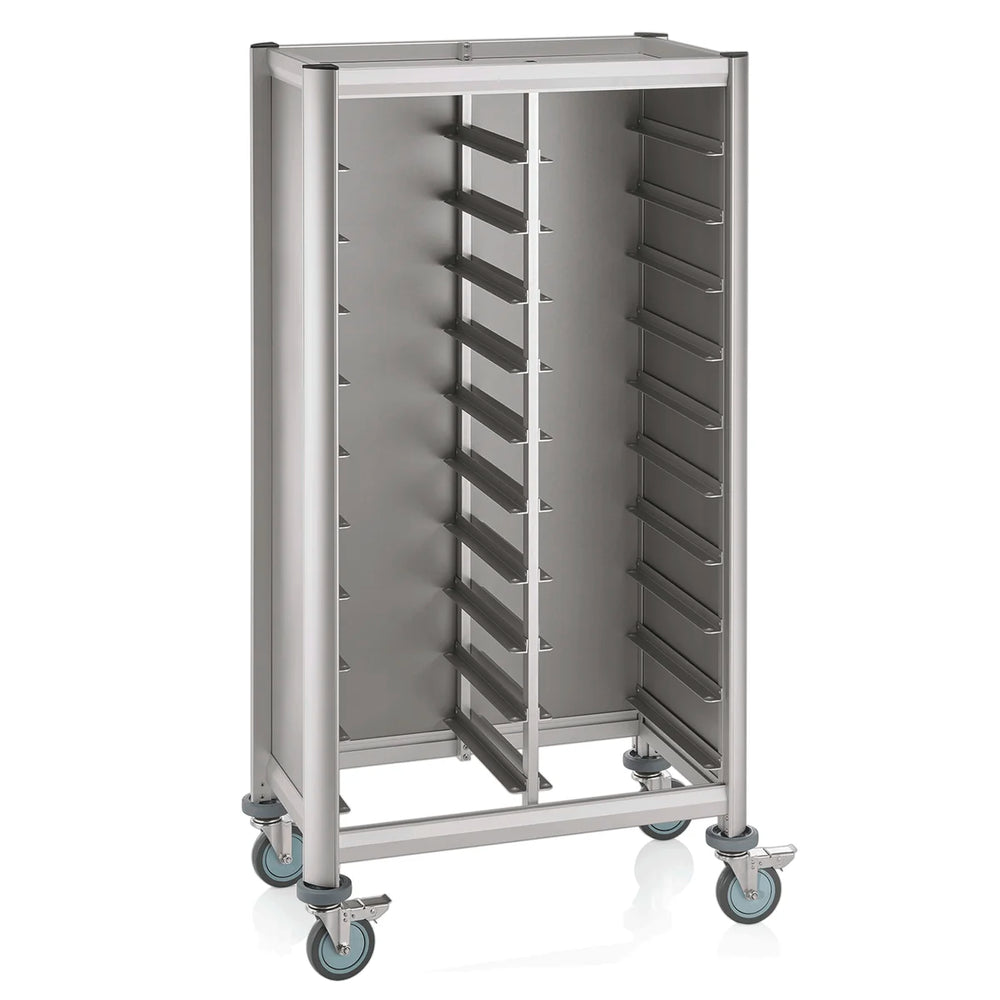 - Tablettwagen Trolley Mensa, für 2x10 Tabletts, silber, 86 x 51 x 165 cm, MDF Holzoptik/Alu