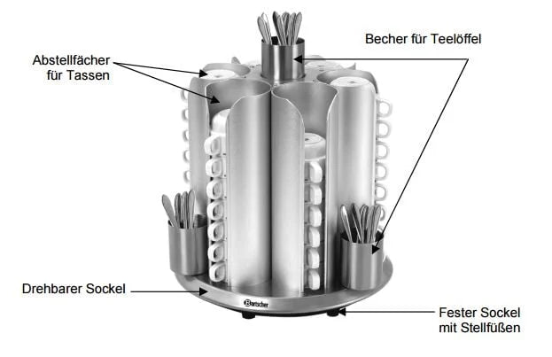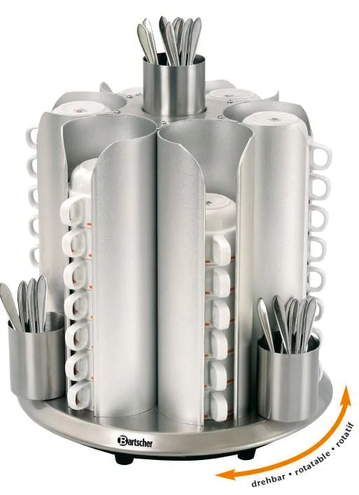 ... vorgewärmte Tassen für mehr Kaffee-Genuß! Kaffeetassen und Löffel sofort griffbereit. In dem Tassenwärmer mit praktischem drehbaren Sockel können bis zu 48 Kaffeetassen gleichzeitig vorgewärmt werden.