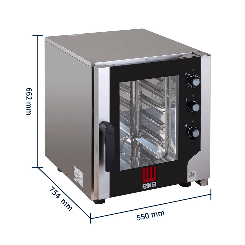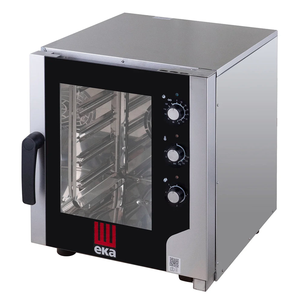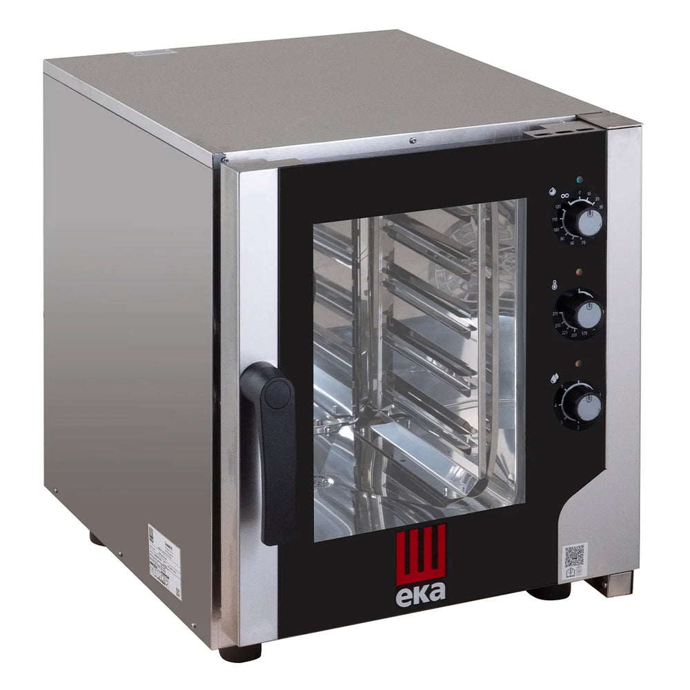 Der elektronische Umluft-Konvektionsofen mit Dampf von Tecnoeka gart jedes Gericht von Braten bis Lasagne schnell und schonend. Dank eines funktionellen Touchscreen-Panels können Sie verschiedene Garzeiten und Programme einstellen. Dieser elektronische Umluft Backofen eignet sich hervorragend für kleine gastronomische Betriebe, in denen der Platz kanpp ist.