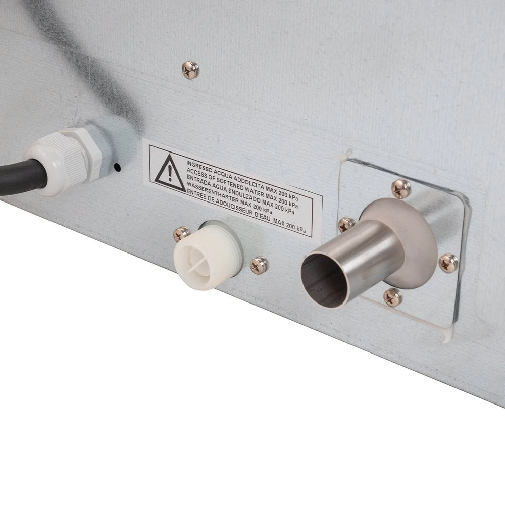 - Geräte mit Festwasseranschluss müssen, mit einer geeigneten Wasseraufbereitung, von einem Fachmann installiert und in Betrieb genommen werden.