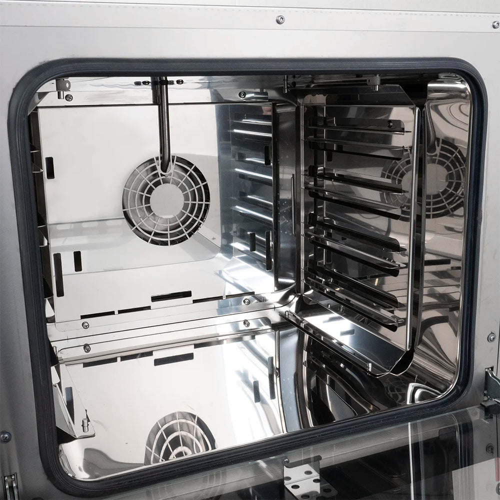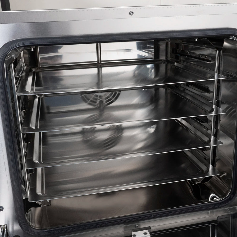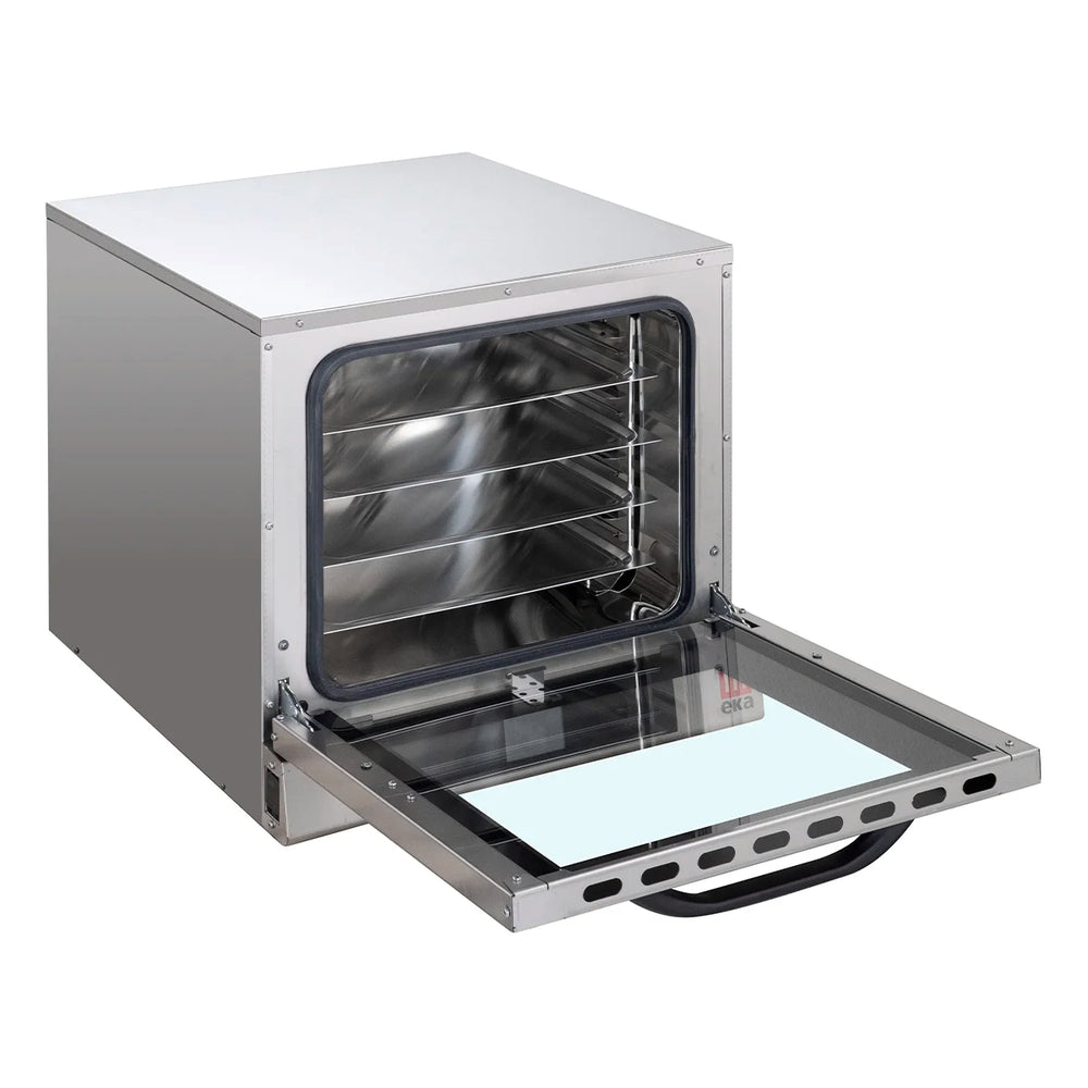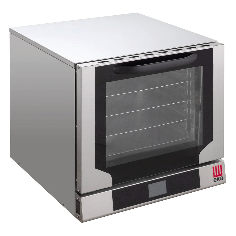 Der digitale Elektro-Konvektionsofen mit Dampf von Tecnoeka ist ideal geeignet für kleine Snackbars und Gastronomiebetriebe mit geringem Platzbedarf. Das Digitaldisplay mit 99 gespeicherten Programmen und 4 Optionen für das Garen machen das Erwärmen von Gerichten einfach und intuitiv.