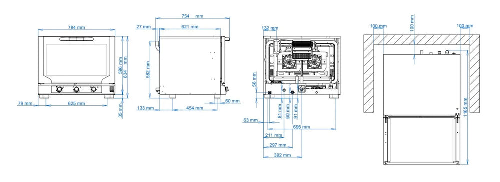 - Kapazität: 4x 600x400 mm Tabletts