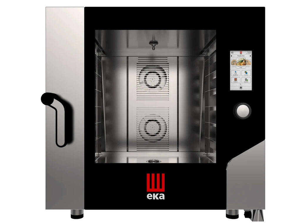 Die hochwertigen Kombi-Öfen von Tecnoeka überzeugen durch ihr solides und erlesenes Design mit vollendeter Technologie. Die Bedienung ist einfach über einen praktischen Touchscreen und 40 voreingespeicherte Rezepte. Der Ofen besitzt die patentierten Systeme Airflowlogic, Humilogic und Drylogic von Tecnoeka.