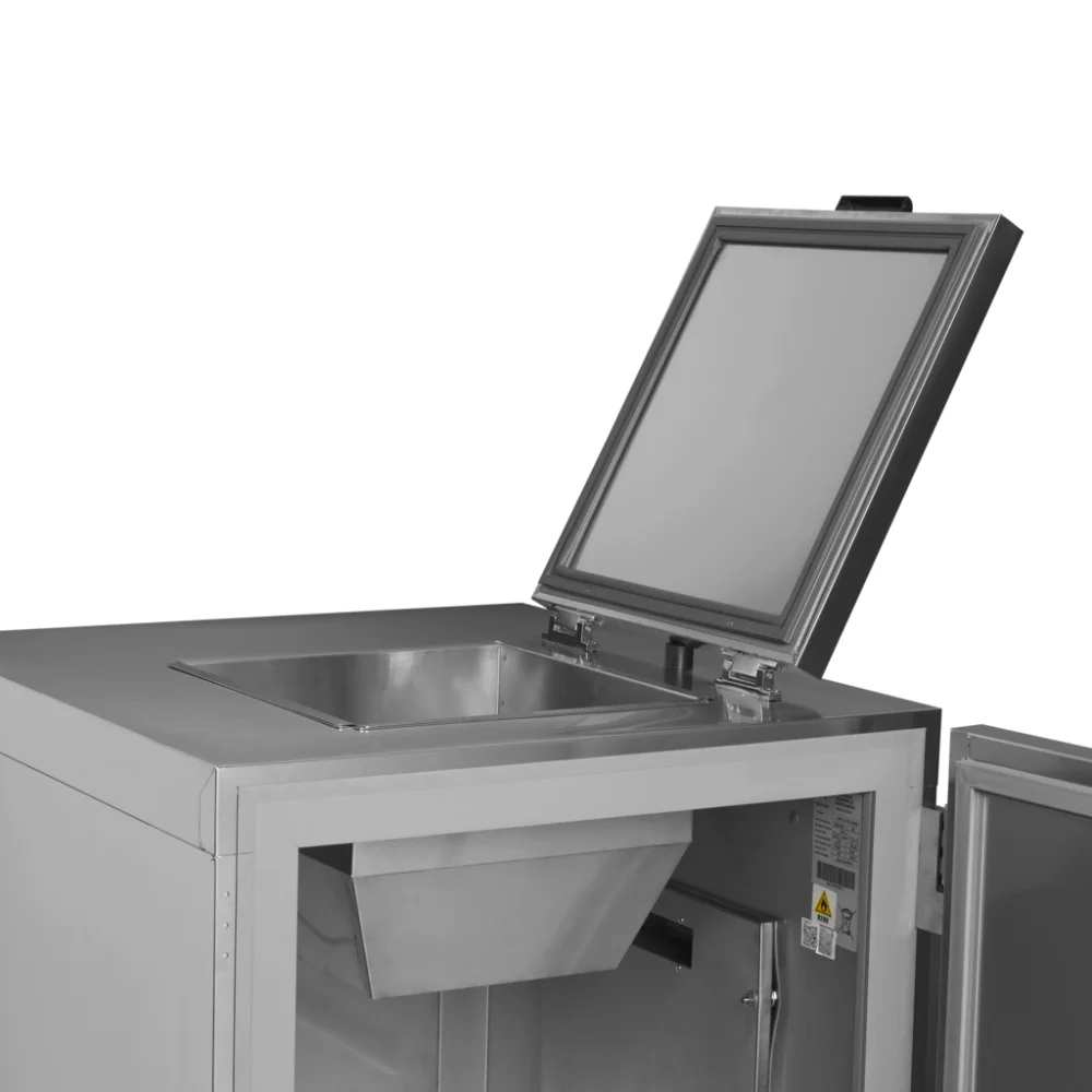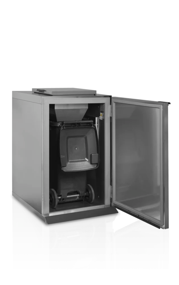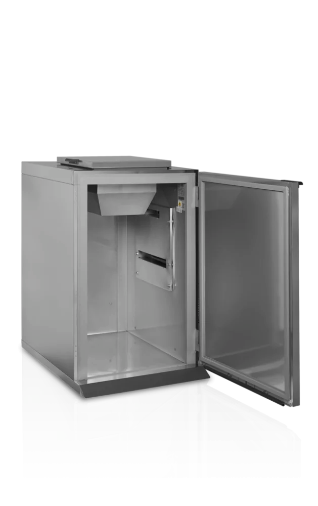 Der Abfallkühler bietet eine hygienische Lösung für die Abfallentsorgung in Großküchen, Supermärkten, Tierarztpraxen und dergleichen. Der Abfall wird auf Temperaturen gehalten, die den Abbau von organischer Substanz aus Frischprodukten verringern. Dieser Kühler bietet Platz für einen Abfallbehälter, entweder 120 l oder 240 l (nicht im Lieferumfang enthalten). Ein Deckel an der Oberseite ermöglicht einen einfachen Zugang zur Abfallentsorgung. Der Deckel ist mit einer Magnetdichtung ausgestattet, wodurch er fest schließt und eine Kontamination der umliegenden Bereiche verhindert. Der Abfallkühler verfügt über eine Rampe, die es erleichtert, den Abfallbehälter hinein- und herauszurollen, wenn es Zeit zum Entleeren ist. Der Abfallkühler hat die Klimaklasse 5 mit einer maximalen Umgebungstemperatur von +43°C und 65 % Luftfeuchtigkeit.