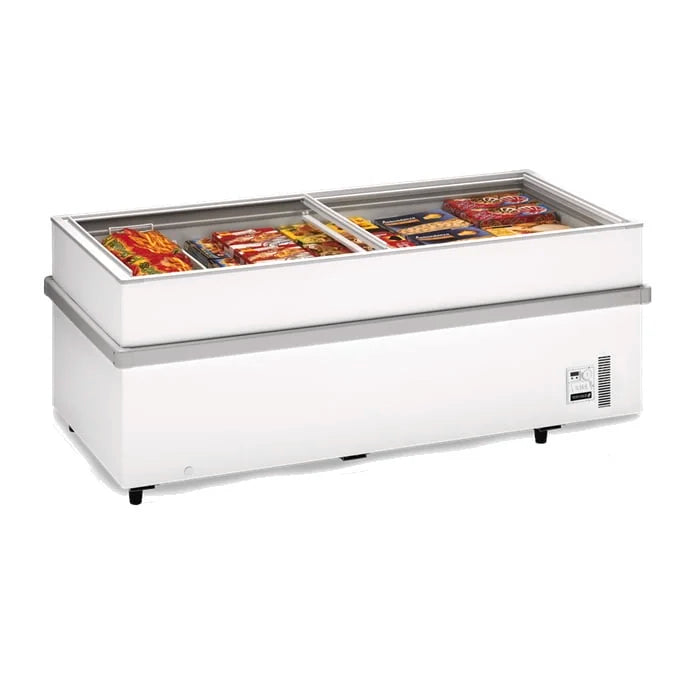 - Tiefkühltruhe mit 2 flachen Schiebedeckeln aus Temperglas