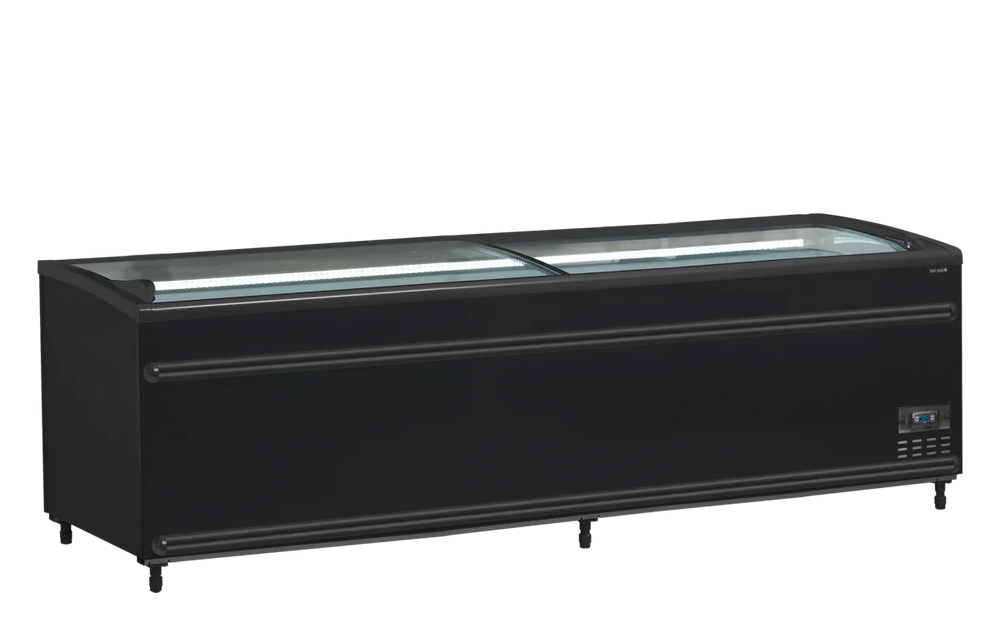 Der SFI Kühl-/Gefrierschrank eignet sich perfekt für die Präsentation von Produkten in Supermärkten, Lebensmittelgeschäften, Metzgereien, Tiernahrungsgeschäften usw. Die gewölbten Glasschiebedeckel ermöglichen eine vollständige Sichtbarkeit der Produkte im Inneren. Die energieeffiziente LED-Innenbeleuchtung an der Rückwand der Gefriertruhe beleuchtet die Produkte wunderschön. Die LED Leuchte hat ein separates Stromkabel, so dass sie an die übrige Beleuchtung im Laden angeschlossen und nachts ausgeschaltet werden kann, um Energie zu sparen. Die Supermarkt-Kühl-/Gefriertruhe kann in Inseln mit einem Kopfgehäuse an jedem Ende oder unter einem MTF-Oberbaumodul angeordnet werden. Der drehzahlgeregelte Kompressor sorgt dafür, dass das Gerät die Temperatur nur bei Bedarf regelt. Das macht das Gerät ca. 20 % energieeffizienter im Vergleich zum gleichen Modell ohne drehzahlgeregelten Kompressor – und dadurch kostengünstiger im Betrieb.
