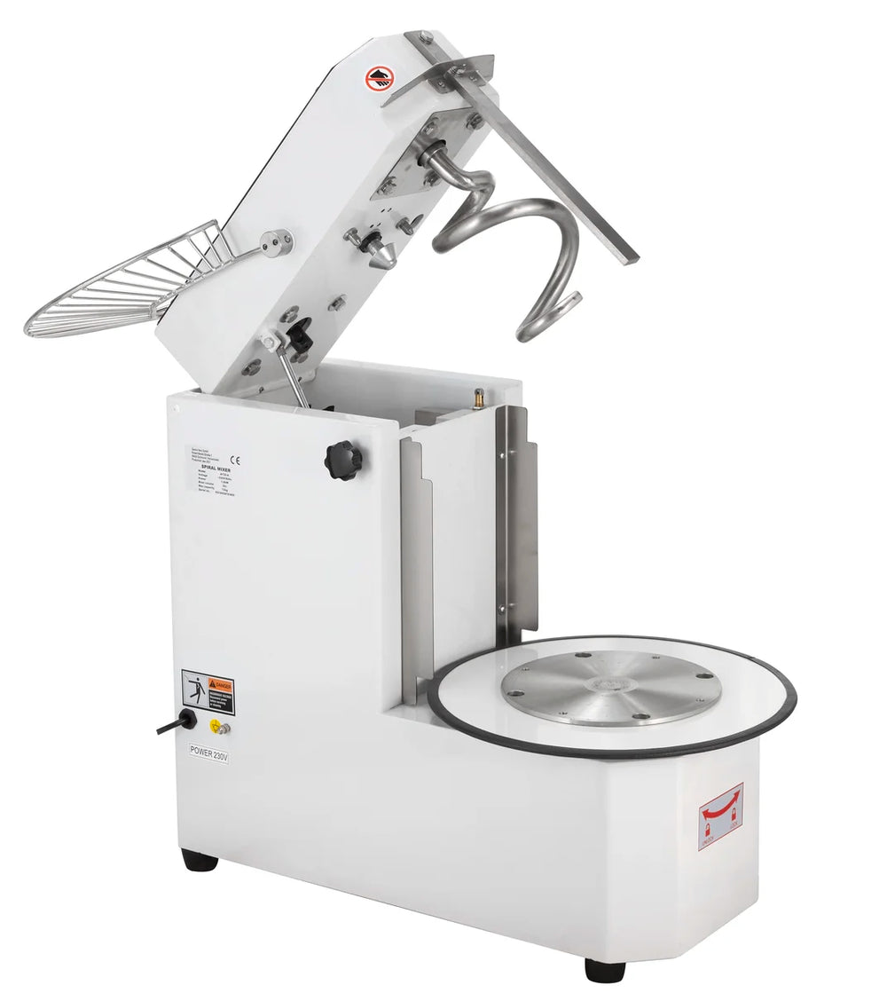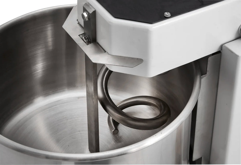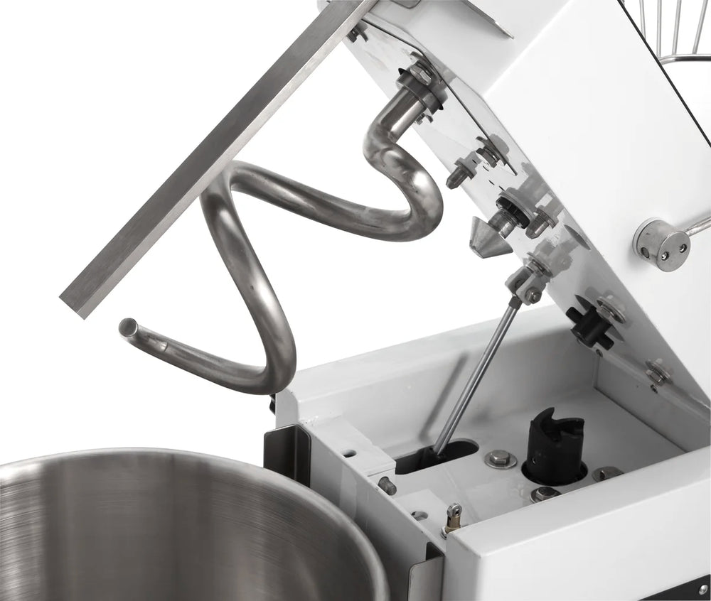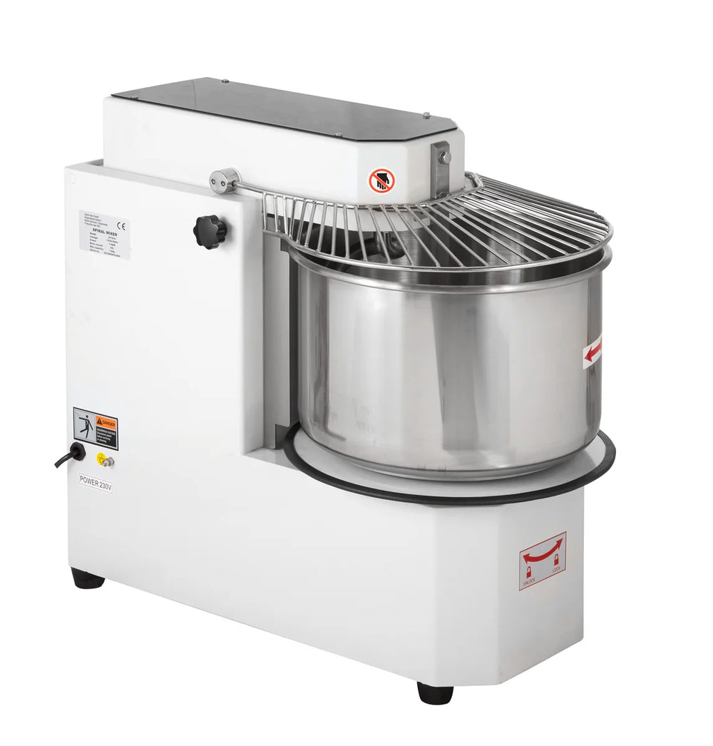 Die Spiralteigmaschine ist die ideale Maschine für das Kneten von Teigen für Pizzerien, Konditoreien und Bäckereien. Die besondere Form des Spiralteigknethakens ermöglicht es in wenigen Minuten, ein perfekt gemischten Teig zu erhalten. Kessel, Knethaken, Teig-Brecher und die Schutzgitter sind aus Edelstahl hergestellt.