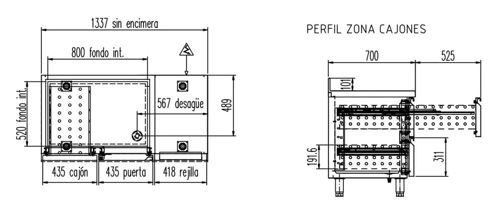 Hinweis:- Bitte beachten Sie bei den Schubladen das maximale Füllgewicht von 35 Kg