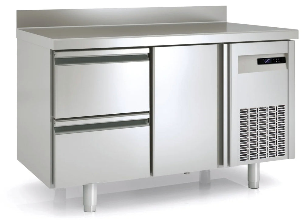 Unsere Tiefkühltische aus der PremiumSerie überzeugen mit modernem Design, hoher Funktionalität, Langlebigkeit sowie einer hochwertigen Verarbeitung. Dank des idealen Temperaturbereichs von -15°C bis -20°C können Sie Ihre Lebensmittel optimal tiefgekühlt lagern. Zudem sind sie dafür konzipiert, einen sehr schnellen PULL-DOWN zu haben, um den Inhalt in kürzester Zeit herunterzukühlen. Das hier verwendete Temperatur-Messsystem vemeidet zu häufiges Anspringen des Aggregats und arbeitet daher besonders energiesparsam und umweltschonend.Sobald die Produkte im Inneren die gewünschte Temperatur erreicht haben, sinkt der Energieverbrauch beträchtlich. Die Tiefkühltische bieten eine perfekte Mischung zwischen Arbeitsfläche und Lagerfläche.