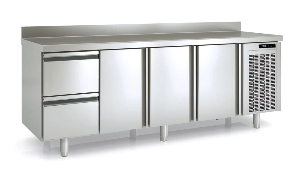 Unsere Tiefkühltische aus der PremiumSerie überzeugen mit modernem Design, hoher Funktionalität, Langlebigkeit sowie einer hochwertigen Verarbeitung. Dank des idealen Temperaturbereichs von -15°C bis -20°C können Sie Ihre Lebensmittel optimal tiefgekühlt lagern. Zudem sind sie dafür konzipiert, einen sehr schnellen PULL-DOWN zu haben, um den Inhalt in kürzester Zeit herunterzukühlen. Das hier verwendete Temperatur-Messsystem vemeidet zu häufiges Anspringen des Aggregats und arbeitet daher besonders energiesparsam und umweltschonend.Sobald die Produkte im Inneren die gewünschte Temperatur erreicht haben, sinkt der Energieverbrauch beträchtlich. Die Tiefkühltische bieten eine perfekte Mischung zwischen Arbeitsfläche und Lagerfläche.