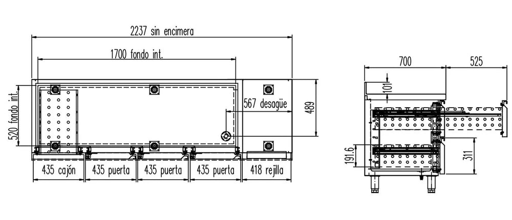 - Arbeitsplatte, Innenraum, Türen und Seitenteile aus hochwertigem Chrom-Nickel-Stahl