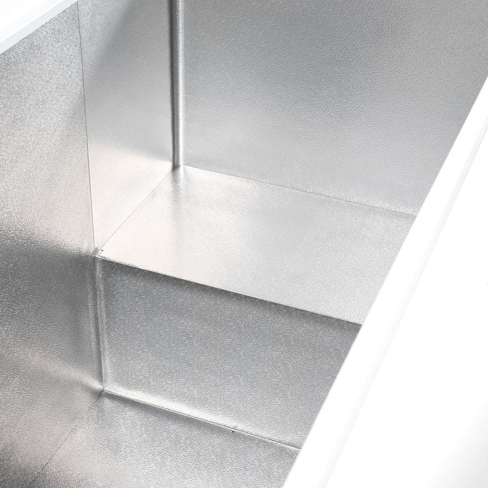 - Innenmaterial besteht aus weiß vorbeschichtetem, geprägtem Aluminium