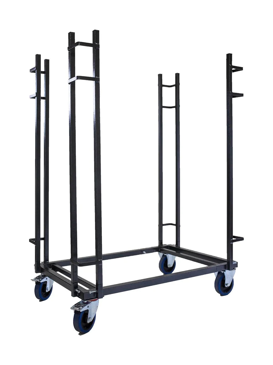 Dieser Transportwagen eignet sich für rechteckige Klapptische. Der Transportwagen ist ausziehbar und kann daher in der Länge und Breite verstellt werden. In der Länge verstellbar von 126 bis 208 cm und in der Breite von 76 bis 100 cm. Somit eignet er sich für verschiedene Tische von Prüfungstischen bis hin zu einem großen Banketttisch.