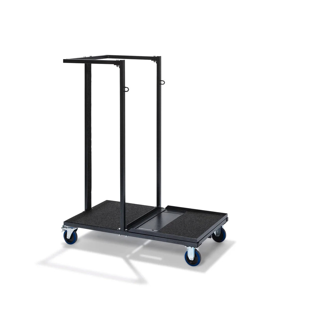 Der Uni-Stack-Wagen ist ein einzigartiger Universalwagen. Alle Stapelstühle passen auf diesen Transportwagen. Da eine einstellbare Platte eingebaut ist, kann der Wagen in jede gewünschte Position bewegt werden. Der komplette Transportwagen ist mit Filz bedeckt, damit die Stühle beim Transport nicht beschädigt werden. Es gibt auch zwei Augen, um die Stühle extra zu sichern. Der Wagen verfügt über 125-mm-Torwegge-Räder mit 2 festen und 2 drehbaren Rädern, wodurch der Transportwagen leicht zu lenken ist.