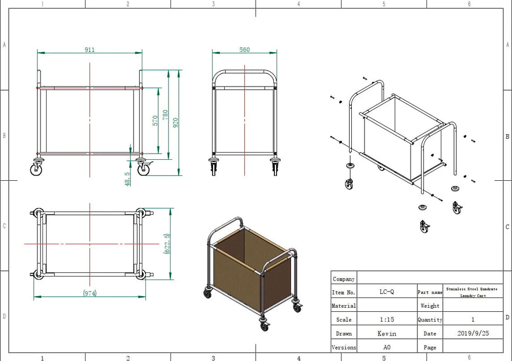 Hinweis: Dieser Artikel wird in Einzelteilen in einem Karton zur Selbstmontage geliefert. Der Ersatz-Wäschesacke zu dem Wäschewagen ECO 135 finden Sie unter der Artikelnummer: LC-QBAG.