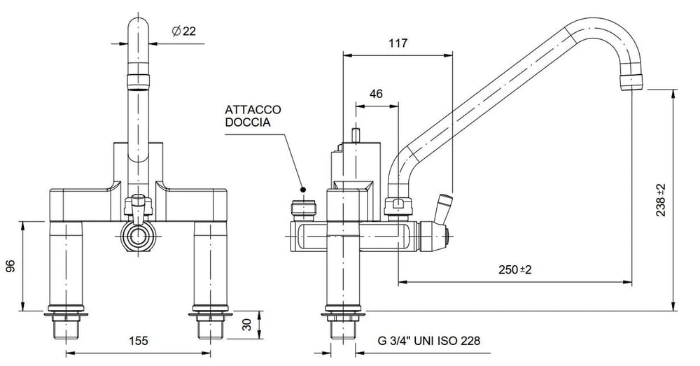 - Durchmesser des Wasserhahns: Ø 22 mm